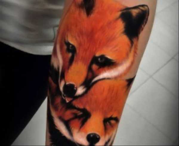 Татуировка лис с лисой олицетворяет крепкую семью, верность партнеру. Такой рисунок обязательно принесет радость в дом. Маленький лисеныш – это дружелюбие, доверие.