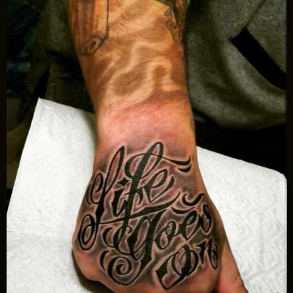 ΠΠ°ΠΊ ΠΡΡΠΎΠ½ ΡΠΎΠΆΠ΅ Π·Π°ΠΊΠ°Π·Π°Π» ΡΠ°ΡΡ Π½Π° ΠΊΠΈΡΡΠΈ. Π€ΠΎΡΠΎ Π½Π°ΠΊΠΎΠ»ΠΊΠΈ Π²ΠΏΠ΅ΡΠ²ΡΠ΅ ΡΠ΄Π΅Π»Π°Π½ΠΎ Π² 2011-ΠΎΠΌ Π½Π° ΡΠ΅ΡΡΠΈΠ²Π°Π»Π΅ ΠΊΠΈΠ½ΠΎ Π² Π’ΠΎΠΊΠΈΠΎ. ΠΠΊΡΠ΅Ρ ΡΠ΄Π΅Π»Π°Π» Π½Π°ΠΊΠΎΠ»ΠΊΡ Π½Π° ΡΠ΅Π±ΡΠ΅ ΠΏΡΠ°Π²ΠΎΠΉ ΡΡΠΊΠΈ. Π’Π°ΡΡΠΈΡΠΎΠ²ΠΊΠ°, ΡΠ°ΠΊ ΠΆΠ΅, Π±ΡΠΊΠ²Π΅Π½Π½Π°Ρ. ΠΠ°Π΄ΠΏΠΈΡΡ Β«YOLOΒ» β Π°Π±Π±ΡΠ΅Π²ΠΈΠ°ΡΡΡΠ° ΠΎΡ Β«you only live onceΒ», ΡΡΠΎ ΠΎΠ·Π½Π°ΡΠ°Π΅Ρ β Β«Π²Ρ ΠΆΠΈΠ²Π΅ΡΠ΅ ΡΠΎΠ»ΡΠΊΠΎ ΠΎΠ΄ΠΈΠ½ ΡΠ°Π·Β».