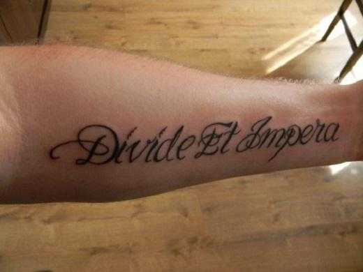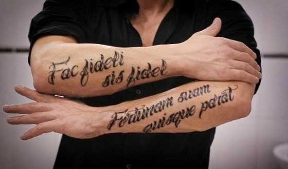 Цитаты на латыни в прошлом не раз были использованы многими известными философами, царями, учеными. Наше время также не является исключением. Достаточно большой популярностью пользуются тату с надписью на руке (с переводом на родной язык, а также без него), спине, шее и других частях тела. Это своего рода тренд, который, впрочем, имеет глубокий смысл и показывает внутренний мир обладателя витиеватой записи.