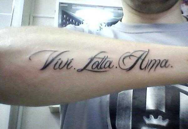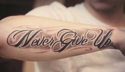 Будет подходящим выполнить тату, мотивирующее не сдаваться, именно на итальянском языке. Нужно быть аккуратным с переводом фраз на этом языке, ведь в нём насчитывается 15 времён и так же как и в русском языке, окончание играет важную роль.
