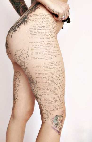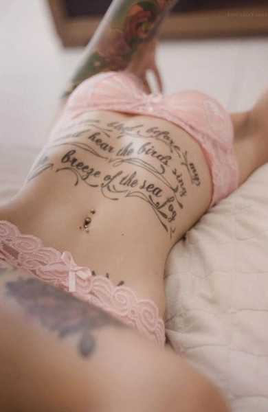 Тату-надписи могут быть женскими и мужскими, на различных языках, различной формы и цвета, на разных частях тела. Одно можно сказать с уверенностью – они привлекают всеобщее внимание. Фото человека с татуировкой в виде надписи выглядит сексуально, и, в тоже время, завораживает и интригует.