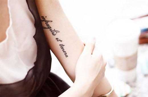 Латинские цитаты – это что-то вроде пословиц, которые становятся видны всем вокруг, становясь татуировками на теле. Всего несколькими словами или целыми предложениями выражается то, что есть в сердце и мыслях носителя. Можно, конечно, набить фразу и на русском языке, но латынь придает даже самому простому высказыванию некий таинственный, мистический и витиеватый смысл. Особенно популярным местом считаются плечи и предплечья. Например, часто можно встретить на их внутренней стороне непонятную тоненькую и загадочную надпись на латыни.