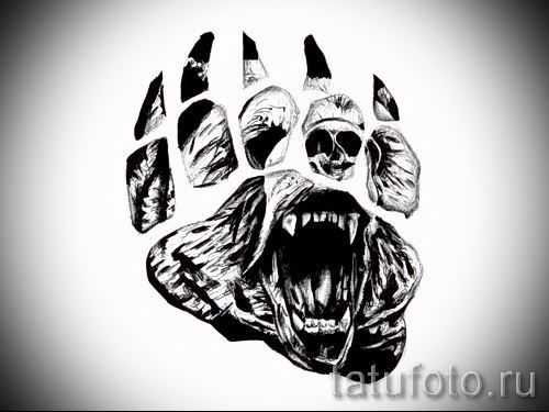 Тем, кто не хочет акцентировать значение татуировки на хищной сущности, подойдет другой стиль изображения, например, тату лапа медведя. Здесь есть отсылка к силе и опасности, но нет прямой угрозы, как в изображении оскаленной пасти.