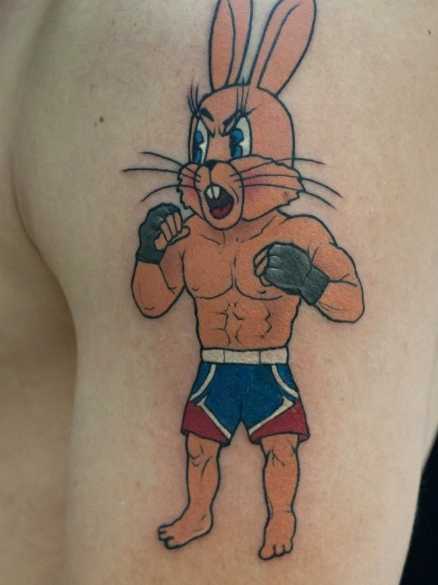 Однако, есть эскизы, ради которых девушки готовы «пожертвовать» солидными участками рук, ног, спины, или живота. Речь идет о мультяшных персонажах и мишках Тедди. Они милы, их символизм шире образа диких животных. Плюшевые мишки – это романтика, нежность, любовь. Кун Фу Панда – символ юмора, ловкости и добродушия.
