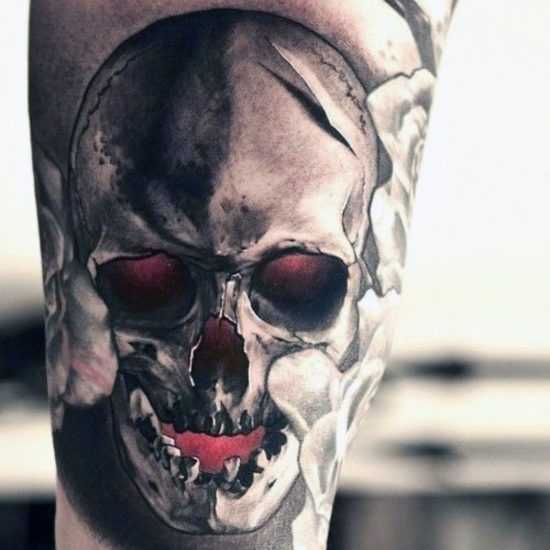 Татуировки с изображением черепов нередко наносят себе те, кто не страшится образов опасности и смерти. Такая татуировка говорит о том, что ее обладатель хорошо знает, что такое риск и понимает, что жизнь слишком коротка, чтобы тратить время впустую.
