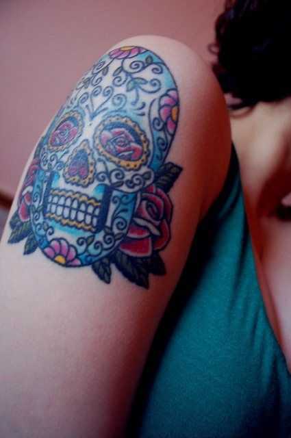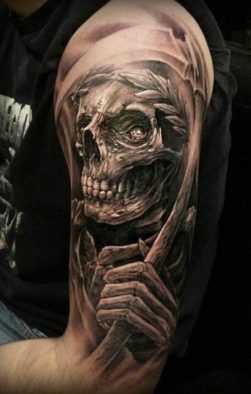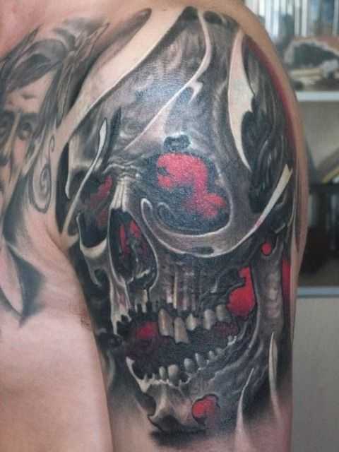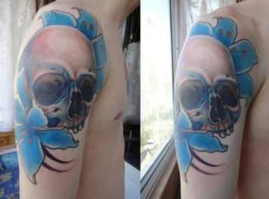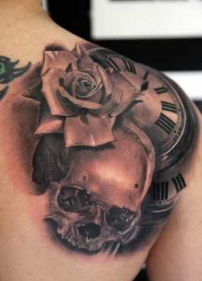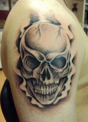 У представителей как мужской, так и женской половины общества довольно интересно смотрится изображение черепа на плече. Летом это часть тела является наиболее просматриваемой. Можно смело сказать, что это одно из самых популярных мест нанесения тату.
