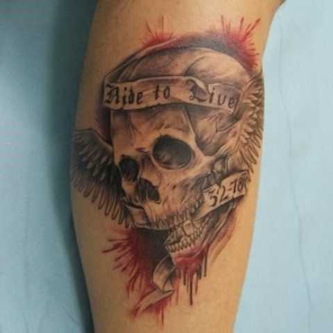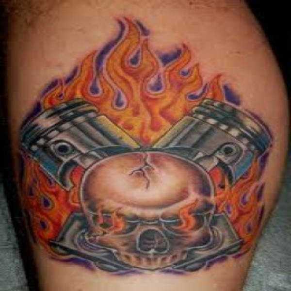 Тату черепа и моторИзображение очень распространенно среди спортсменов контактного вида спорта. Это изображение можно было встретить на руках и ногах:
