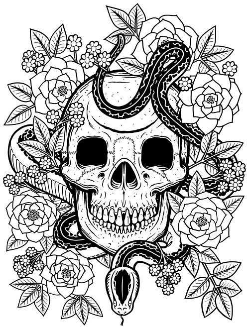 Череп со змеей, извивающейся сквозь глазницы, – символ мудрости и бессмертия.