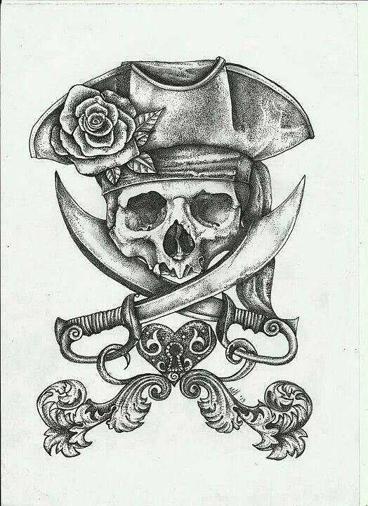 Тату черепа и розыВпервые символ череп стали использовать пираты 17 века. Рисунок на теле обозначал «мертвая голова».
