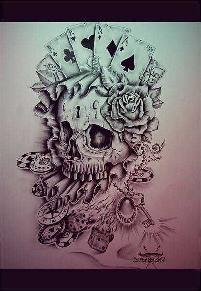 - Татуировка черепа с игральными костями говорит о тщетности и опасности игры со смертью.