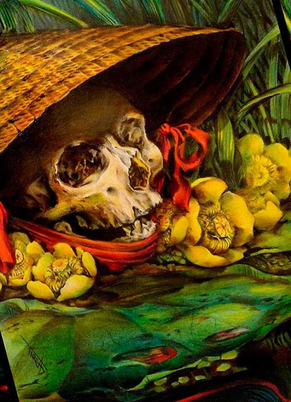 Это отсылка к культу Вуду и его аналогам, в котором голова покойника самый сильный амулет удачи и защиты. В современном тату череп несет как шутливое, так и сакральное значение.