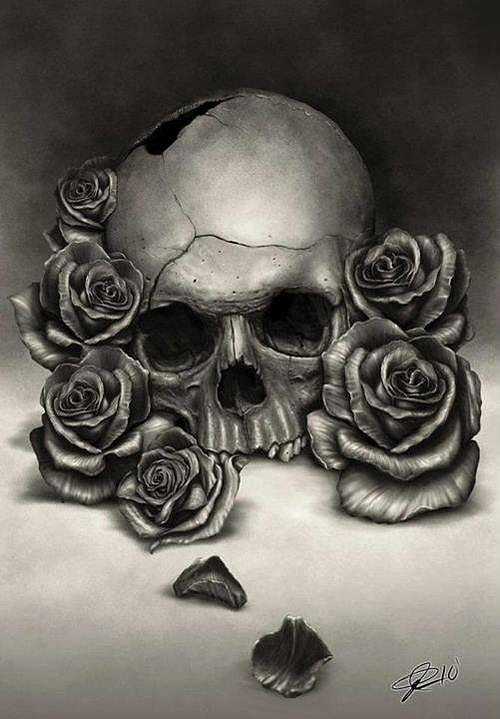 - Череп, обвитый розой, напоминает о потере близкого, дорогого человека.