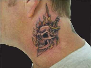Яркий знак прямолинейности в трактовке значения такого символа выступает в изображении черепа, проткнутого кинжалом. Это свидетельствует о непримиримом желании носителя такой татуировки нанести ответный удар своему противнику в качестве мщения за содеянные обиды.
