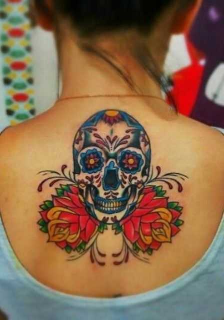 - Если Вы хотите создать на своем теле большую композицию с черепом и цветами, животными, либо используя какие-либо другие символы, стоит обратить внимание на зону спины, как отличное полотно для нанесения красивого рисунка.
