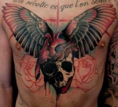 - Череп с сакральной надписью. Выбор надписи зависит от концепции татуировки и личных убеждений автора.