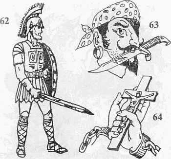 62. Гладиатор. Наносится быками и бойцами. Чаще всего — на грудь. С меча может стекать кровь, что указывает на бойца со «стажем».