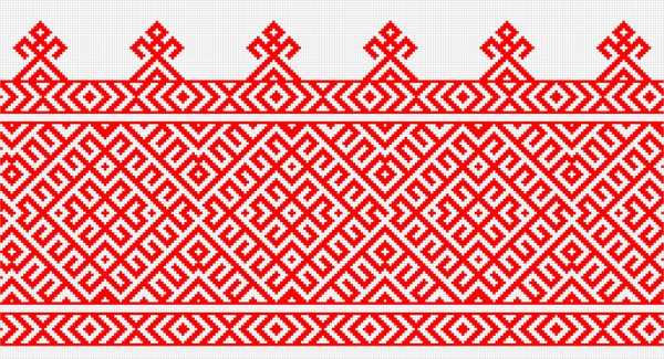 Национальный орнамент Белоруссии – это неизменный белый фон с красными изображениями на нем. Считается, что только у этой национальности получилось сохранить неизменным первоначальный вид узоров, существовавших еще со времен древнеславянских племен. Белый цвет признанно обозначает чистоту и открытость, а огненно-красный изображает кровь, солнце и, соответственно, жизненную силу. Черный цвет начали применять с конца позапрошлого века, но в мизерных количествах. Другие цветовые гаммы при этом не использовались.