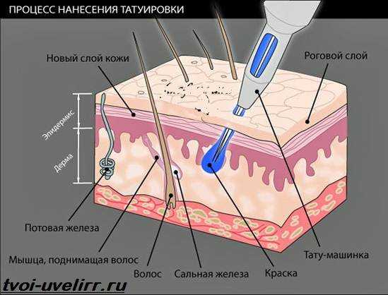 Теоретически процедура нанесения татуировки предполагает введение красящих пигментов в глубокие слои кожи. Соответственно для того, чтобы сделать тату, необходимо проколоть кожу и при помощи инструмента ввести в микроранку краску. При столь варварском варианте татуировки для прокола кожи используются любые иглы, например швейные или от шприцов для инъекций.