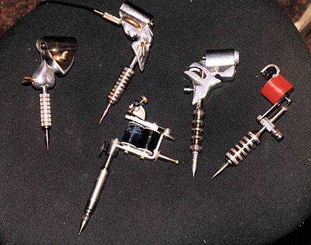 Мастер вставил еще несколько игл и дополнит конструкцию резервуаром с краской. Так появилась первая в мире тату-машинка.