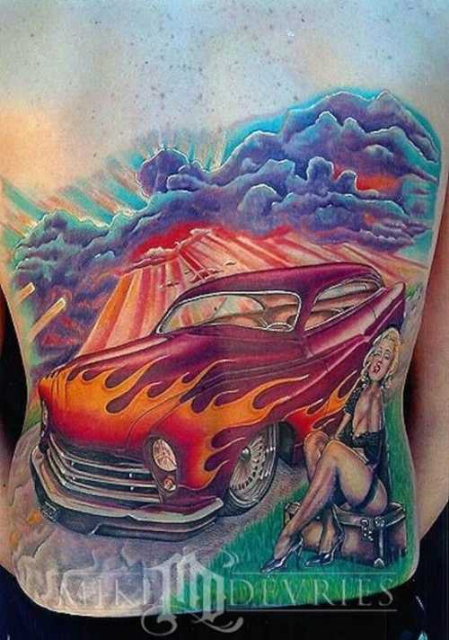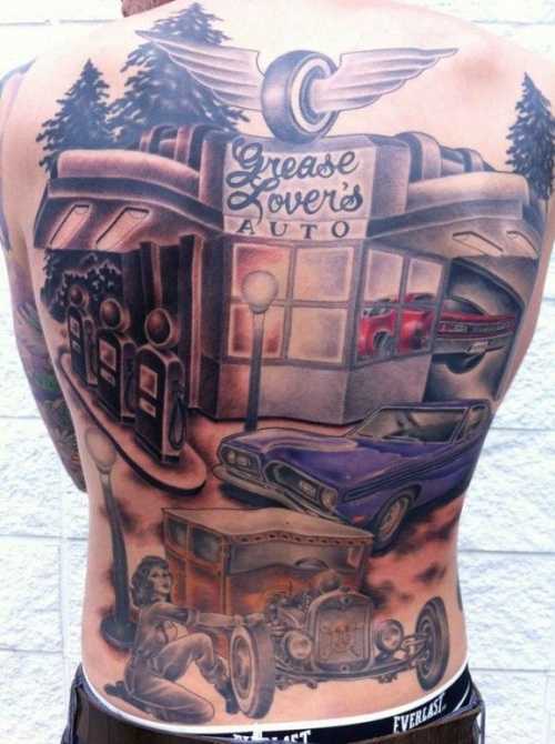 Автомобили (машины) – лучшие творения человека. Они помогают преодолеть большие расстояние за малое время, дают возможность почувствовать свободу и скорость. Многим мужчинам очень нравятся красивые машины, поэтому они стараются выразить свою любовь к ним в татуировках.