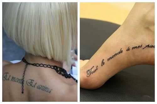 У Девида Бекхэма и Анжелины Джоли есть на теле священные тексты. Некоторым знаменитостям по вкусу татуировки в виде надписи на латыни. Некоторые отдают предпочтение словам из песен известных музыкантов.