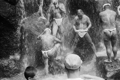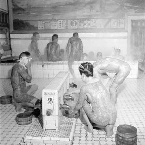 1946, Π’ΠΎΠΊΠΈΠΎ, Π―ΠΏΠΎΠ½ΠΈΡ ~ (ΡΠ»Π΅Π²Π°) Π’Π°ΡΡΠΈΡΠΎΠ²Π°Π½Π½ΡΠ΅ ΡΠ°Π±ΠΎΡΠ½ΠΈΠΊΠΈ Π±Π°Π½ΠΈ Π² ΠΎΠ±ΡΠ΅ΡΡΠ²Π΅Π½Π½ΠΎΠΉ Π±Π°Π½Π΅, (ΡΠΏΡΠ°Π²Π°) Π―ΠΏΠΎΠ½ΡΠΊΠΈΠΉ ΠΌΠ°ΡΡΠ΅Ρ ΡΡΠ°Π΄ΠΈΡΠΈΠΎΠ½Π½ΠΎΠ³ΠΎ ΠΈΡΠΊΡΡΡΡΠ²Π° Π½Π°Π½ΠΎΡΠΈΡ ΡΠ°ΡΡΠΈΡΠΎΠ²ΠΊΡ Π½Π° ΠΏΠ»Π΅ΡΠ΅ ΡΠ»Π΅Π½Π° ΠΏΡΠ΅ΡΡΡΠΏΠ½ΠΎΠΉ Π³ΡΡΠΏΠΏΠΈΡΠΎΠ²ΠΊΠΈ ~ Π€ΠΎΡΠΎ Β© Horace Bristol