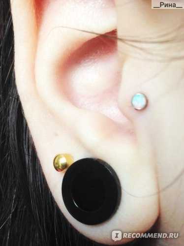Но к тому моменту я уже знала о том, что ключевую роль в заживлении играет выбор украшения, и через месяц после прокола, сережка была заменена на микроштангу. Неприятные ощущения это исключило, но шарик-застежка часто зацепляется за вкладыш-насадку наушника, из-за чего раскручивается и теряется. Пару раз из-за этого я теряла и сережки – не жалко, но однажды потеря не была замечена вовремя, отчего прокол в течение нескольких часов реактивно уменьшился, и поставить в него сережку вновь оказалось большой проблемой.