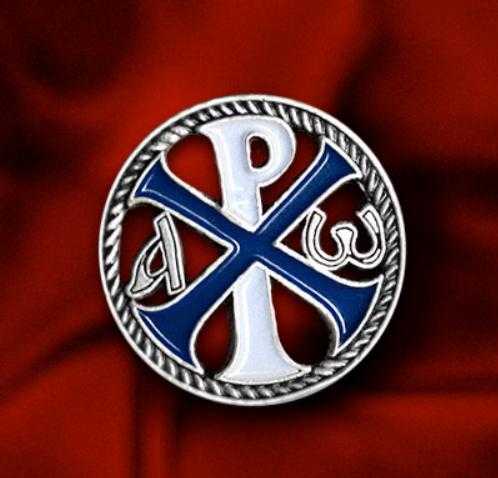 Иногда к «хризме» добавлялись символы вечности — буквы «альфа» и «омега» или, в качестве варианта, он выполнялся в виде андреевского креста, перечёркнутого поперечной чертой, то есть в виде букв «I» и «X» и мог быть прочитан, как «Иисус Христос».