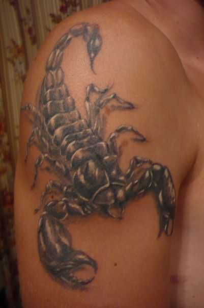 Мужская тату скорпион на лопатку Черная тату с крупным скорпионом Тату скорпион контурами 3d тату с рисунком скорпионТатуировка скорпион синим цветом Реалистичный скорпион в рисунке тату Тату скорпион как символ знака зодиака
