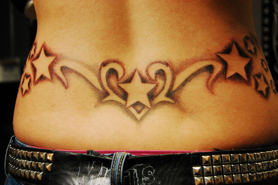 Следует заметить, что в конце двадцатого века такая татуировка на пояснице была популярна среди прислуги и проституток. Что не могло не наложить своеобразное клеймо на такого вида тату. Но со временем стремясь быть красивыми и сексуальными, девушки несколько поменяли свое отношение к ним, вот, пожалуйста, некоторые данные. На сегодня 25 процентов жителей Америки имеют тату, из них 20 процентов женщин носят именно татуировку на пояснице. И этому есть свои причины. Первое, на пояснице много места, достаточно для того, чтобы набить хорошую, большую татуировку. На эту зону хорошо подходит огромное количество узоров. И даже самая хрупкая девушка сможет на пояснице сделать обширную татуировку. Второе, кожа на пояснице практически не растягивается, даже в старости, что позволяет такой татушке служить дольше, чем остальные. Такую татуировку можно легко в случае необходимости скрыть под одеждой. Но также просто и выставить такую татуировку на всеобщее обозрение, достаточно просто «нечаянно» нагнуться, чтобы задралась футболка или кофта. Еще одним плюсом есть то, что нанесение тату на поясницу не столь болезненное, но сравнению с другими зонами, потому что кожа там тонкая и находится близко к кости.