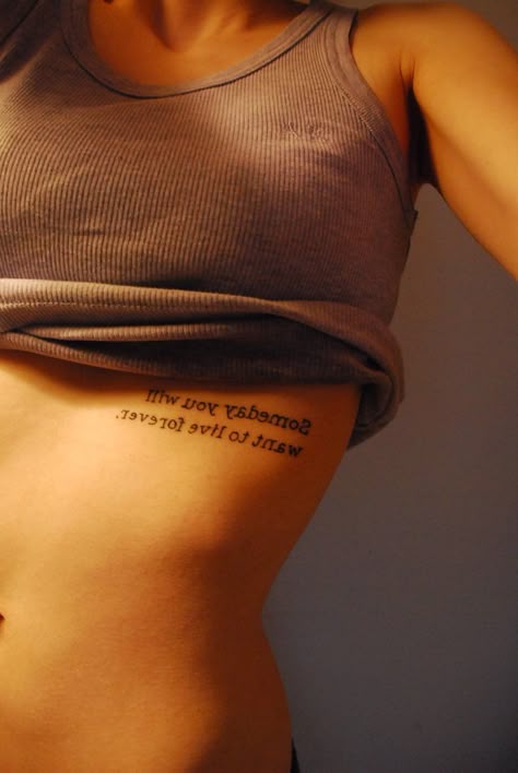 В отличие от татуировок на запястье или пальце, чернила на ребре лучше видны зрителям, чем тем, кто их носит. Таким образом, это может быть идеальным местом для татуировки сообщений, как эта сладкая цитата о любви здесь.