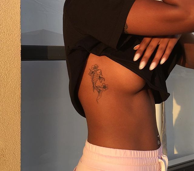 Тату на ребрах золотой рыбки