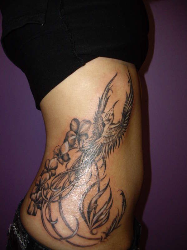Поэтому выбирать изображение и место нанесения необходимо тщательно. Часто для татуировки на ребрах выбирают изображения папоротника или яркой колибри. Прекрасно выглядит ловец снов, изображение бабочек, дракона, различных цветов и перьев. Замечательно и привлекательно на ребрах будет смотреться изображение птицы феникса и другие яркие картинки. Отличный вариант татуировки на боку – оригинальные надписи. Это могут быть крылатые фразы или цитаты. Выбирая эскиз для татуировки на ребрах, проявите всю свою фантазию.