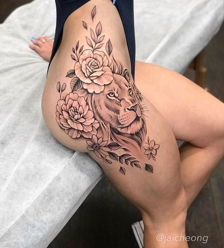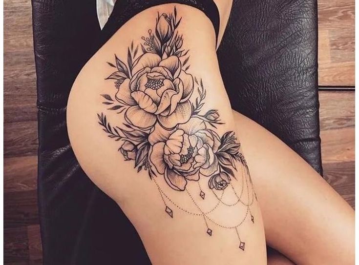 Тату на бедре обычно не несет в себе глубокого философского подтекста, не заставляет размышлять. Они призваны показать сексуальность девушки, ее красоту. Надписи, которые так популярны на запястьях, смотрятся скучно. Кокетливым и страстным натурам подойдут соблазнительные бантики ближе к ягодицам или подвязки, изображения кошек или пантер. Романтичные девушки часто выбирают бабочек, звезды или цветы. Здесь также без сюрпризов: самыми популярными цветами являются розы, пионы и лотосы. Кстати, пионы считаются символом богатства, поэтому их часто наносят для привлечения материального благополучия.