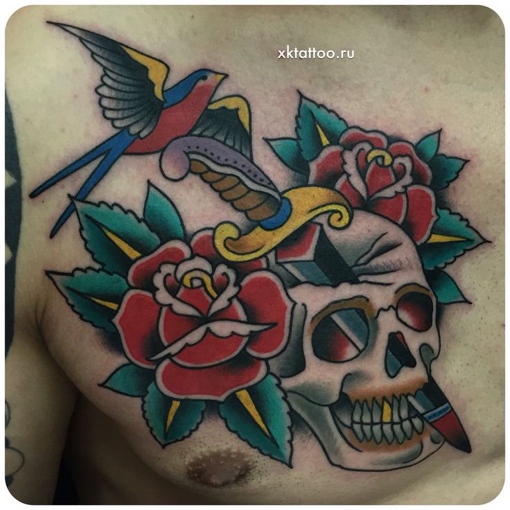 Татуировки в стиле олд скул всегда очень яркие, но в тоже время лаконичные, при этом детализация рисунка и его реалистичность не стоят на первом плане. Нюансы и особенности стиля: