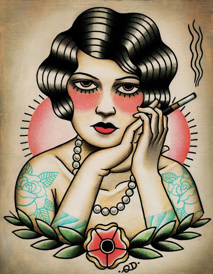В целом этот стиль не пользуется среди девушек особой популярностью и до сих пор, ведь олд скул характерен яркими узорами, которые нужно наносить на видимые участки тела.