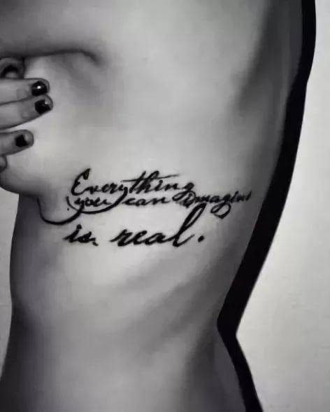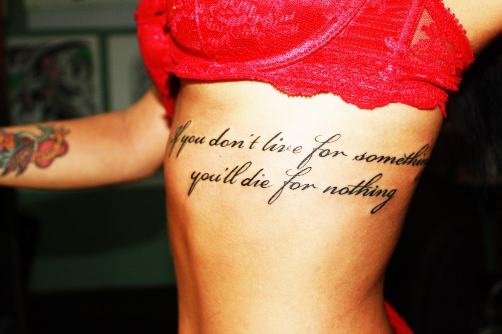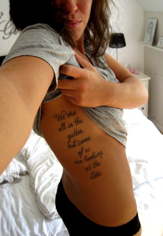 Вариант создания сюжета на ребрах является универсальным как для мужчин, так и для женщин. Красивые надписи, интересные рисунки, личные данные в оригинальном оформлении будут смотреться весьма стильно на этой области. Женские татуировки на ребрах часто имеют философский смысл. Это могут быть мудрые изречения на латыни или других языках, фразы из фильмов или жизненное кредо человека.