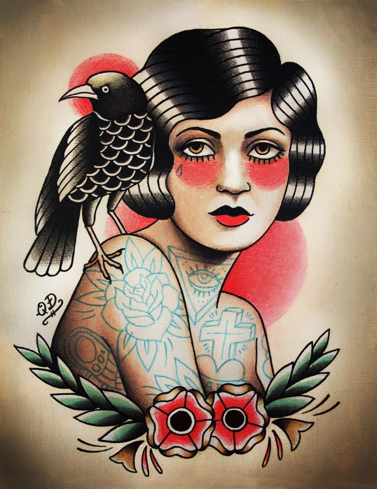 Многие из ее традиционных американских рисунков включают в себя более темную эстетику и объединяют несколько изображений, чтобы создать один великий американский традиционный стиль.
